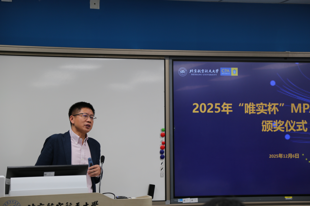 12月6日下午,北京航空航天大学经济管理学院MPAcc教育中心与澳洲注册会计师公会联合举办的2025年“唯实杯”MPAcc学生案例大赛圆满落幕,颁奖典礼在北航学院路校区新主楼A1148教室隆重举行。