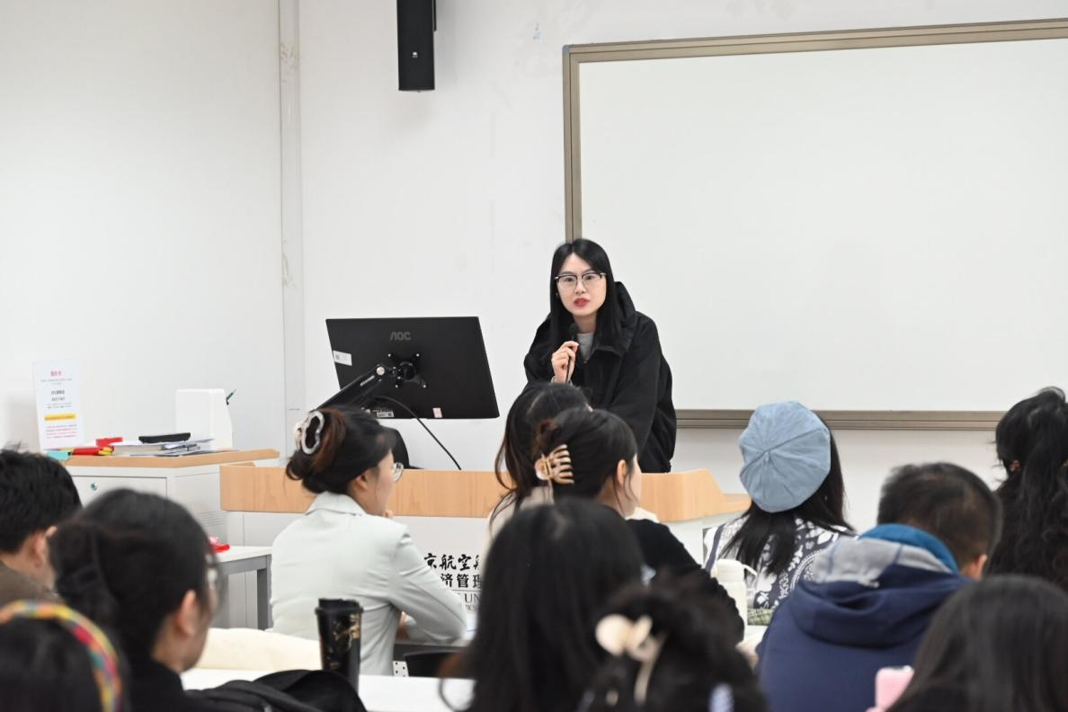 其后,2019级MPAcc校友、普联软件股份有限公司从业者闫林旗,以及同届从事私募基金工作的校友徐轩相继分享。闫林旗学姐回顾了疫情期间线上学习的经历,感慨线下交流的珍贵,建议学子珍惜在校时光,多参与跨专业、跨领域活动,充分利用北航资源拓宽视野;同时结合行业趋势,强调财务人才需兼具专业知识与数字化工具应用能力,才能在市场竞争中凸显优势。学长徐轩则聚焦时代变革,分析AI对行业格局的“创造性破坏”,提醒学子关注前沿趋势,利用在校时间跟随导师更新分析框架,明确未来发展方向;他以自身为例,提及北航课程中的案例(如财务管理案例中的“中金转债”)可转化为实际应用机会,鼓励学子主动挖掘知识价值。